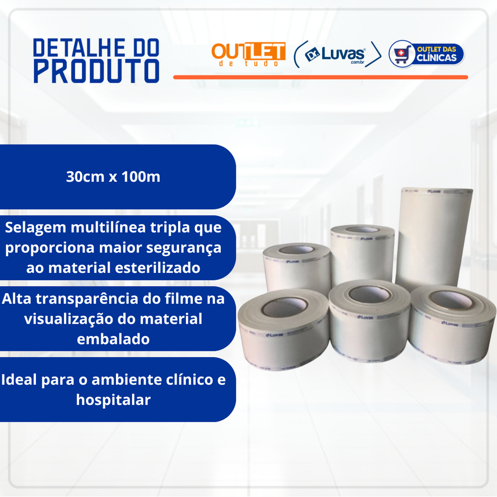 Papel Grau Cirúrgico 30cm x 100m - Dr. Luvas