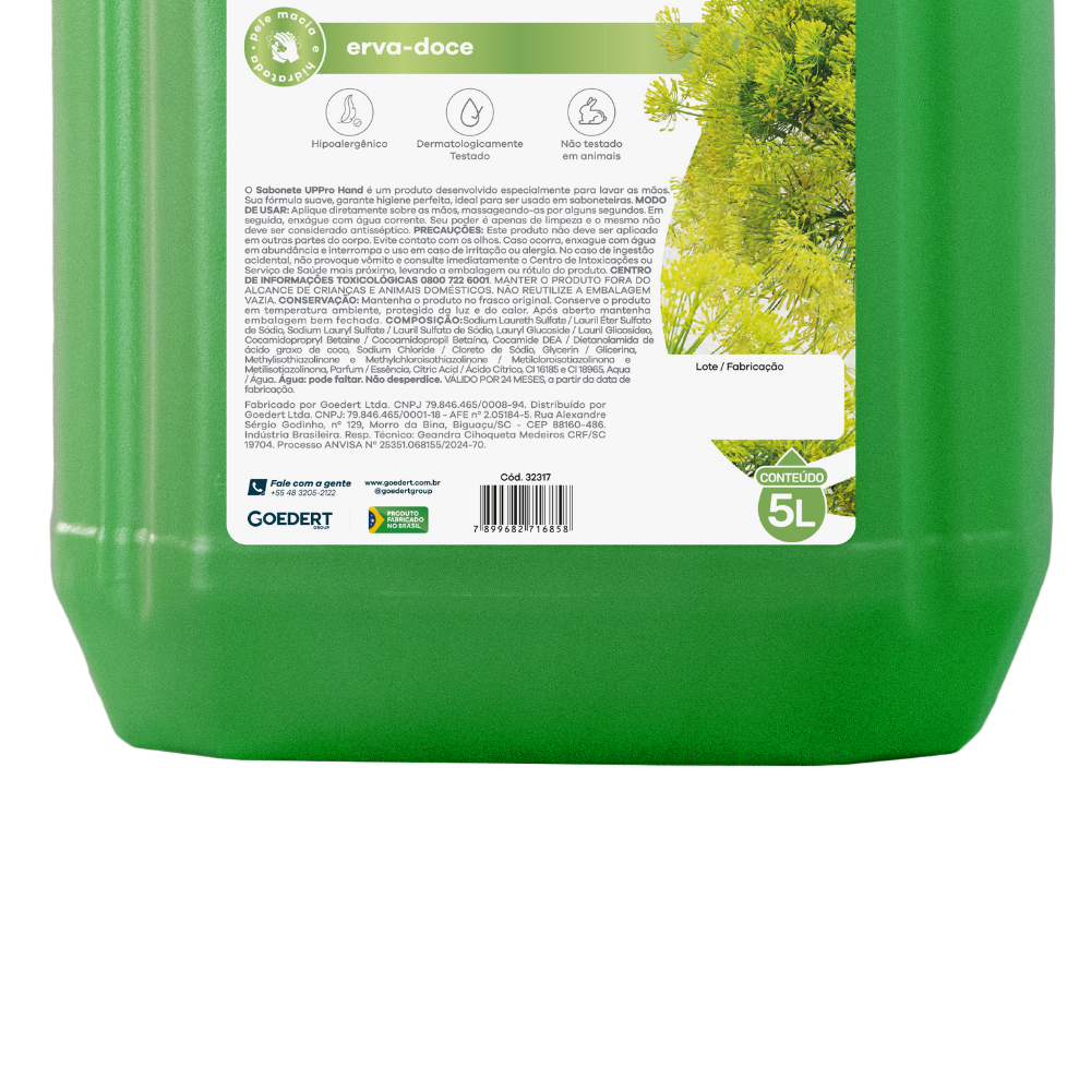 - Fórmula com glicerina que hidrata e protege a pele das mãos.