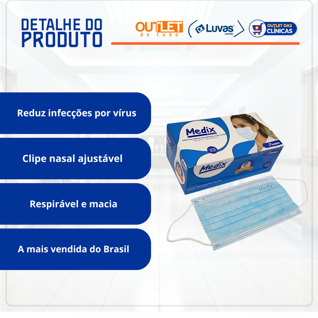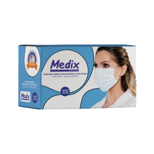 Máscara Cirúrgica Tripla Azul Com Elástico 50un - Medix