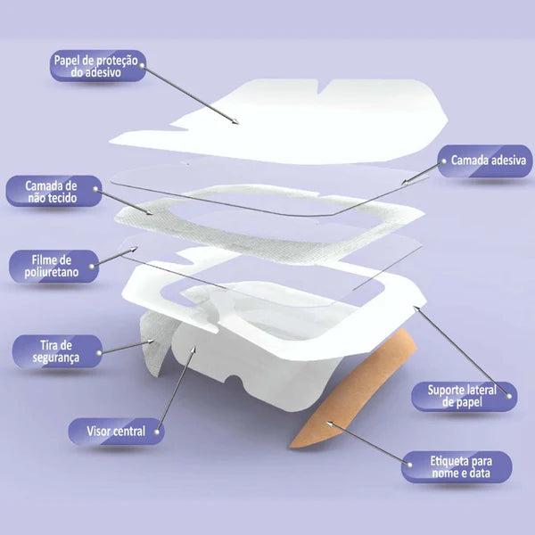 - O curativo possui sistema de aplicação estilo moldura para facilitar o manuseio.